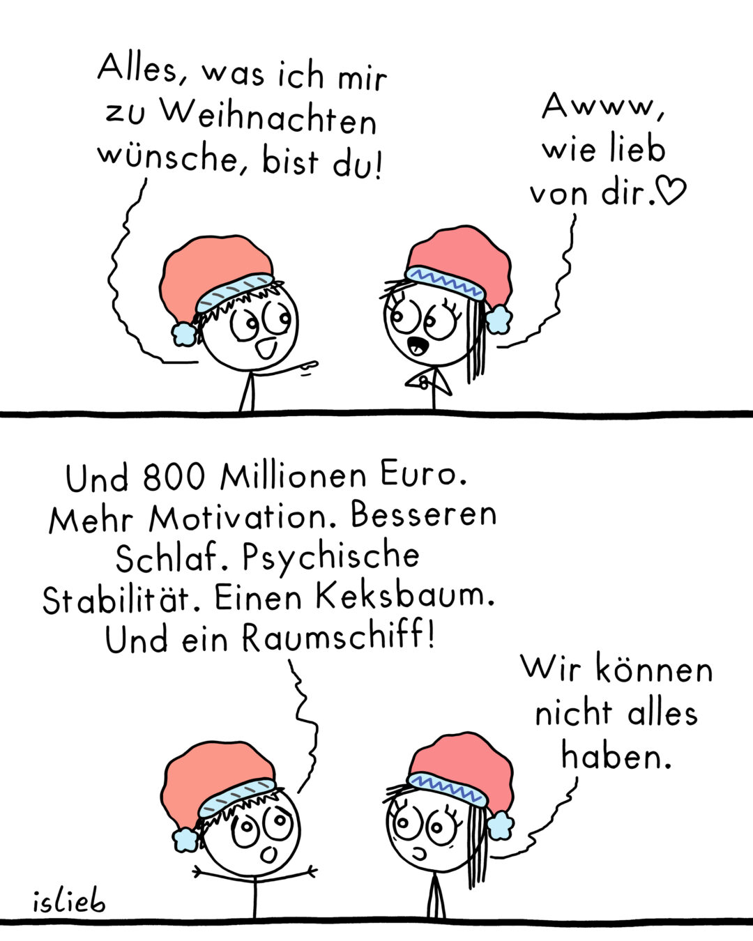 Nur wenige Personen kennen ALLES, was ich jemals gekrakelt habe und islieb-Comics sind relativ zeitlos, ich zeichne ja meistens nichts zu aktuellen Ereignissen (vielleicht sollte ich das in Zukunft häufiger machen). Daher finde ich das eine gute Lösung, um nach und nach auch immer mal wieder ältere Highlights zu präsentieren und gleichzeitig niemanden zu langweilen, weil jeder Beitrag auch neue Zeichnungen enthält.