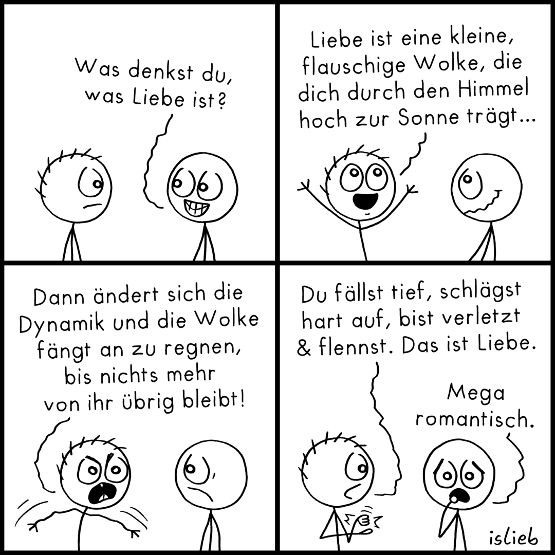 Tut mir sehr leid, dass es hier eine ungeplante Comicpause gab. Das kommt davon, wenn man nie vorarbeitet. Bin jetzt aber wieder voll da und werde mich bemühen, das aufzuholen. Vielleicht berichte ich die nächsten Tage in Comic-Form, was bei mir los war. Schönes Beinahe-schon-Wochenende an alle!