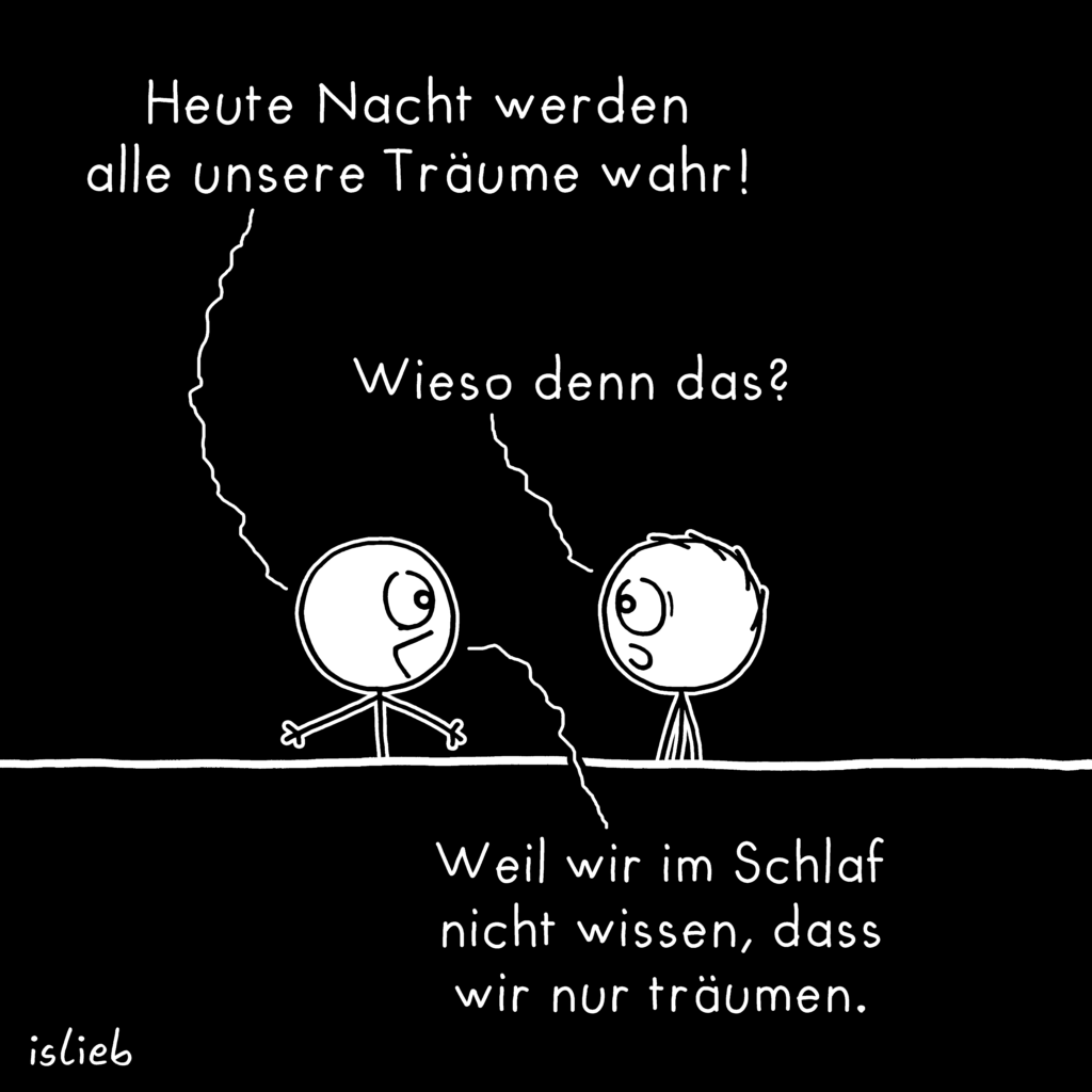 Euch allen eine möglichst gute Nacht ohne Schlaflosigkeit oder unangenehme Träume! Und einen guten Start in die neue Woche, denn ich fürchte, morgen ist möglicherweise Montag! (Es sei denn, ihr lest diesen Kommentar einen Tag später, dann ist morgen Dienstag, yay!)