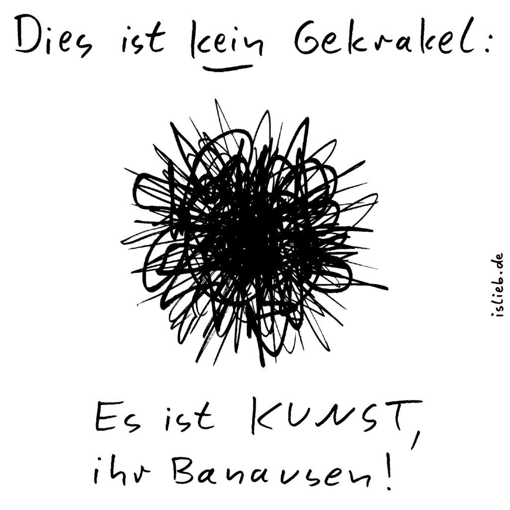 Hier ein Beispiel, was ich NICHT mit „Experimenten“ meine. Das sind zwei Comics, in die ich mal ein bisschen abstrakten Hintergrund eingefügt hatte. Solche Sachen mache ich eh ab und zu, einfach für einen Schuss Abwechslung. Aber das ist nur Spielerei ohne inhaltliche Bedeutung, der Hintergrund könnte genauso gut komplett schwarz bzw. weiß bleiben und inhaltlich ist das typischer islieb-Humor: