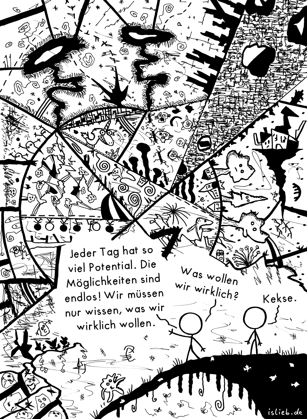 Die typischen islieb-Comics kommen weiterhin (vielleicht ein paar weniger), aber zwischendurch probiere ich immer wieder, in einem Comic etwas zu machen, was ich noch nie oder ganz selten gemacht hatte.