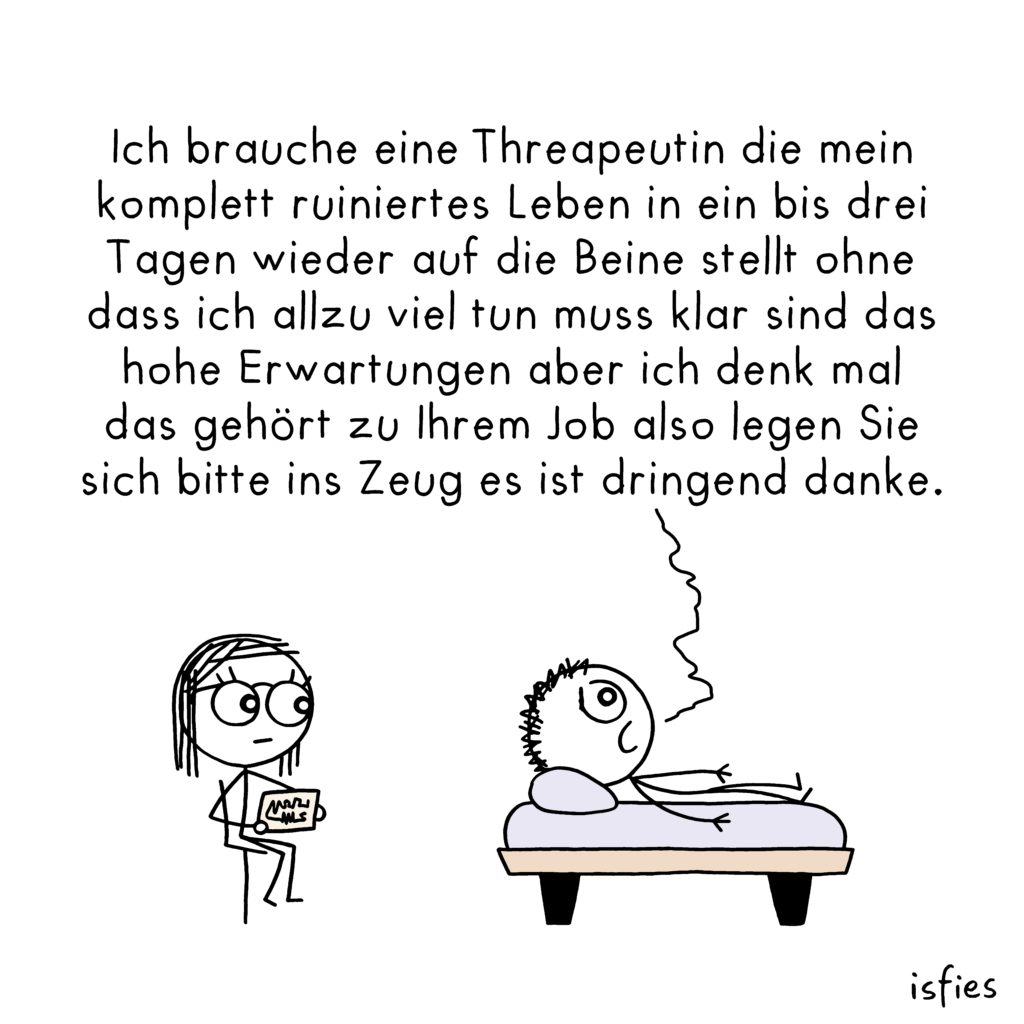 Das ist wieder grandios wie immer, lieber Eylou ❤. Einzig aus der Threapeutin könntest du doch vielleicht noch eine Therapeutin machen, islieb!