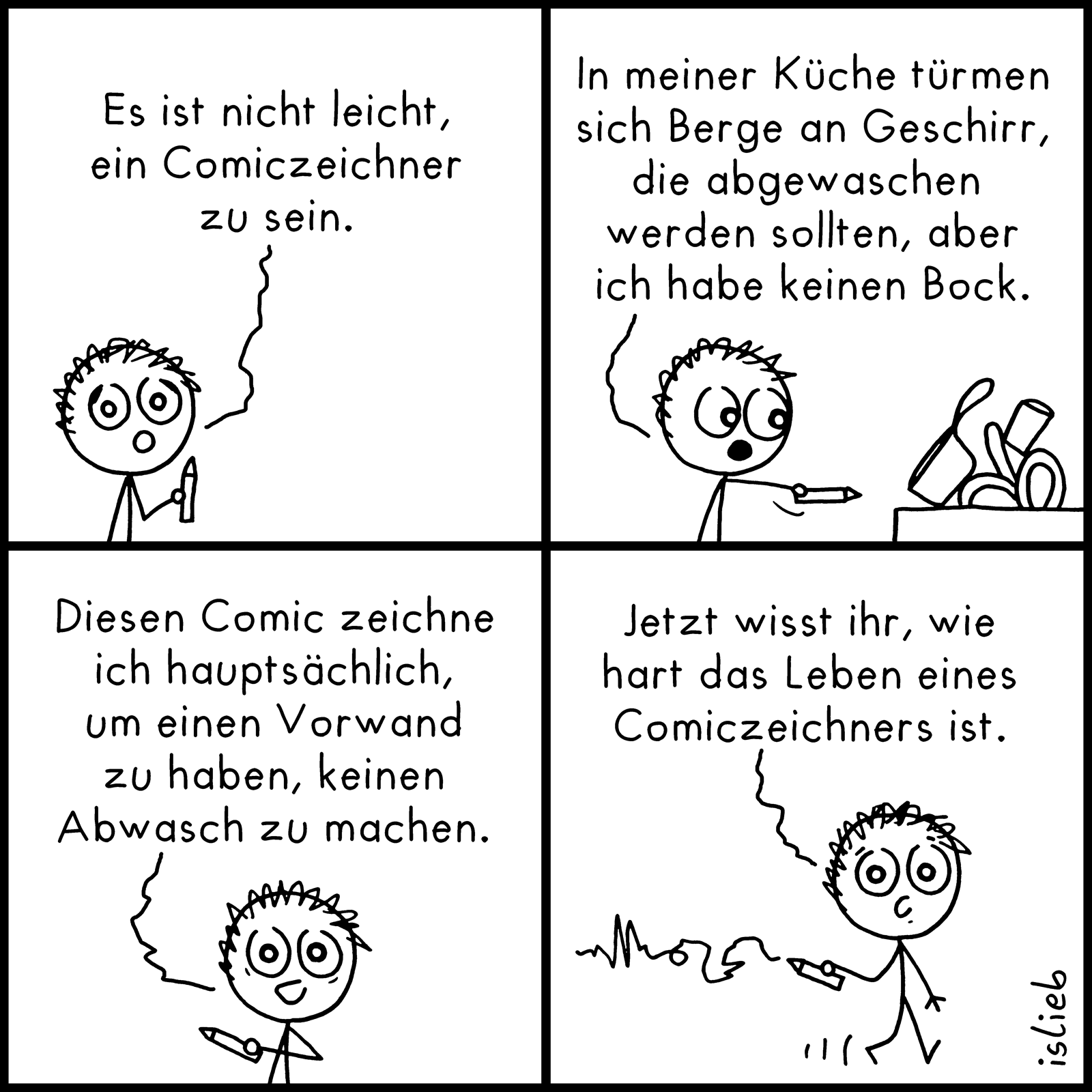 Also den mach ich sofort gern täglich für dich ….für einen Comic täglich! Im Übrigen sieht’s bei mir nicht besser aus…so ne gute Ausrede wie Comic habe ich allerdings nicht