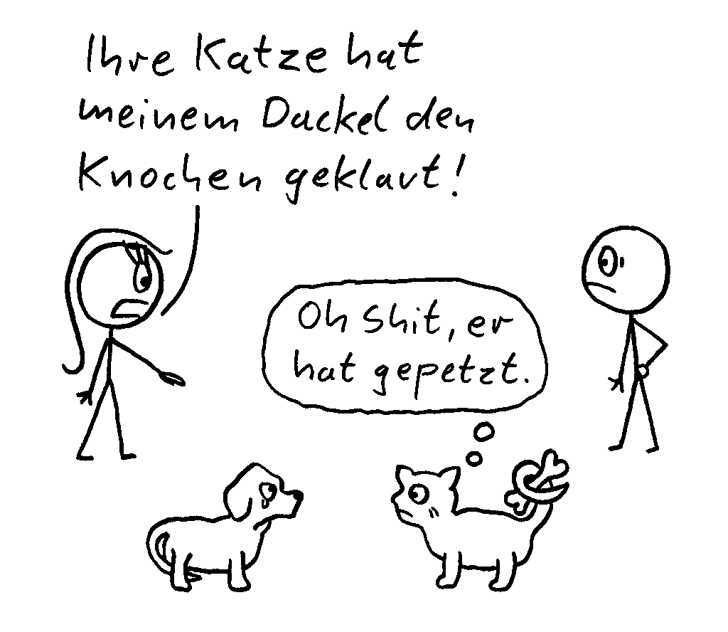 Ich hoffe die böse MitzeKatze hat dem armen Hündchen den Knochen wieder zurück gegeben 🥺