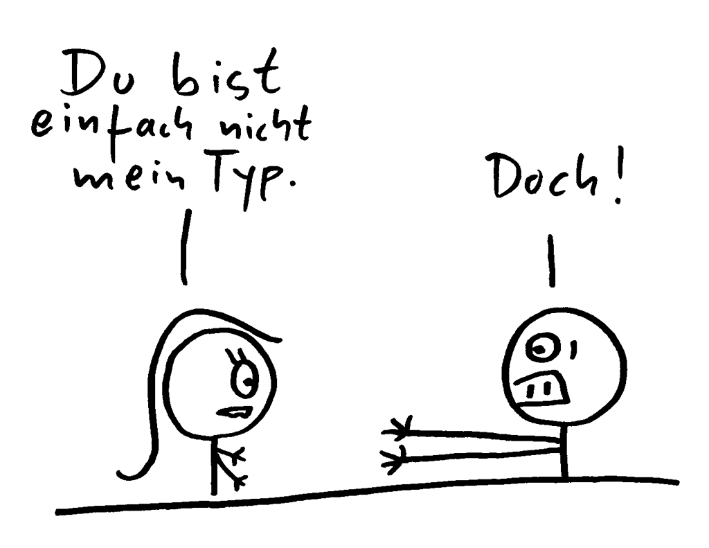 Mit den islieb-Comics ging das genauso los. In einem Buch hatte ich ne kleine Comic-Zeichnung gesehen und dachte: „Das kann ich doch vielleicht auch“. Direkt ein paar Ein-Bild-Comics mit nem Edding gekrakelt, weil gerade einer rumlag. Mit Strichmännchen, weil die leicht zu zeichnen waren. Für ein paar Freunde auf Facebook hochgeladen, genau wie meinen ganzen anderen Murks.