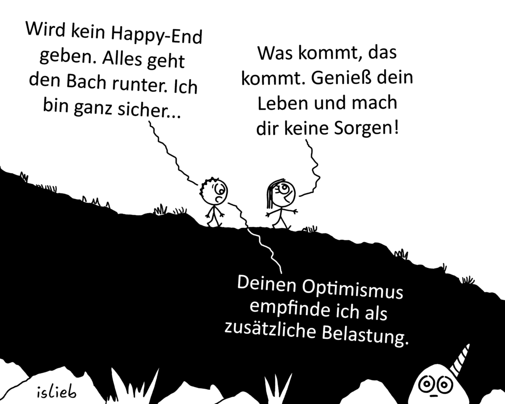 Thema Comic-Experimente! In nächster Zeit will ich auf jeden Fall öfter mal Comics einwerfen, in denen die Figuren deutlich kleiner gezeichnet sind. Hier wäre so ein Cartoon:
