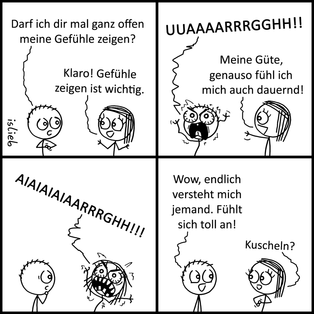 Update – in der ersten Version war ein Tippfehler, bzw. ein ganzes Wort zu viel. So ein Mist. Hatte den Comic gerade überall hochgeladen und das dann bemerkt. Da hab ich auch direkt UUUAAAARRRRGHHH! gerufen und den Comic schnell wieder von allen islieb-Seiten gelöscht, weil er eh erst ein paar Minuten online war. Morgen poste ich ihn überall noch mal. Auf Patreon und im islieb-Club kann ich Beiträge zum Glück bearbeiten, das is lieb.