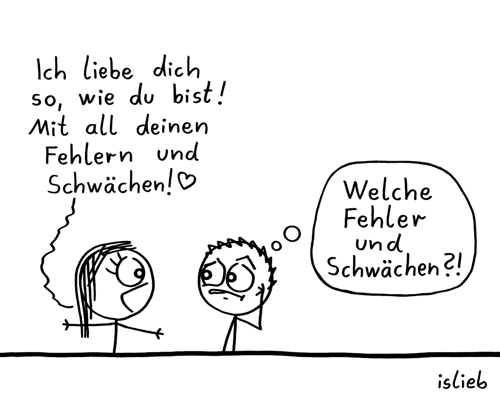 OK, aber was ist mit islieb-Clubmitgliedern? Euch würde ich bei der Gelegenheit einfach einladen, nach Herzenlust alles zu kritisieren, was ich bisher bezüglich des islieb-Clubs noch nicht so gut auf die Reihe kriege, was unklar ist, was sich verbessernn ließe usw. Ihr könnt auch gern auf der Clubseite kommentieren oder mir ne WA-Nachricht schreiben. Euer Feedback werde ich dann… an mich selbst weiterleiten und mir wirklich zu Herzen nehmen!