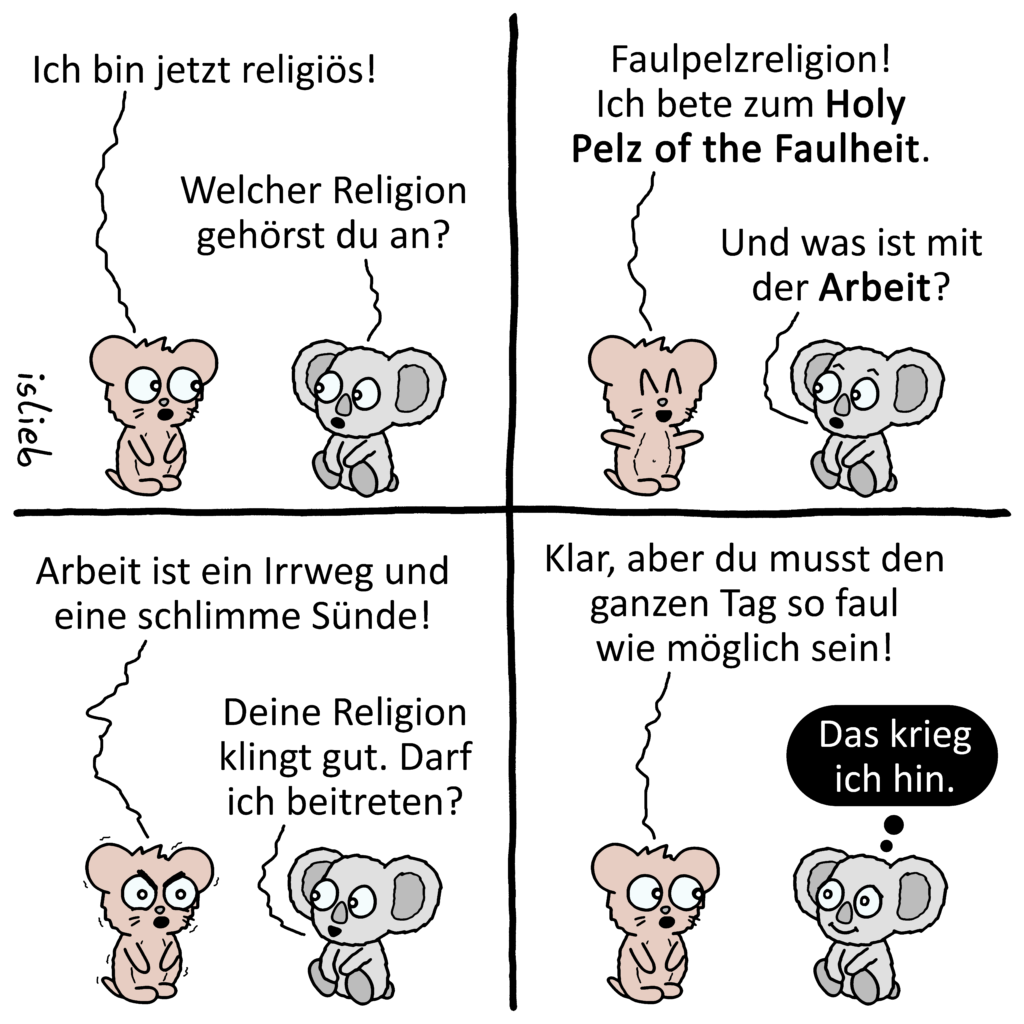 Religiös 1. Mai 2022 von Eylou Kommentar verfassen Heute ist ja Tag der Arbeit, da wollte ich nen passenden Comic krakeln. Comic-Ansicht: Normal | Comic-Archiv