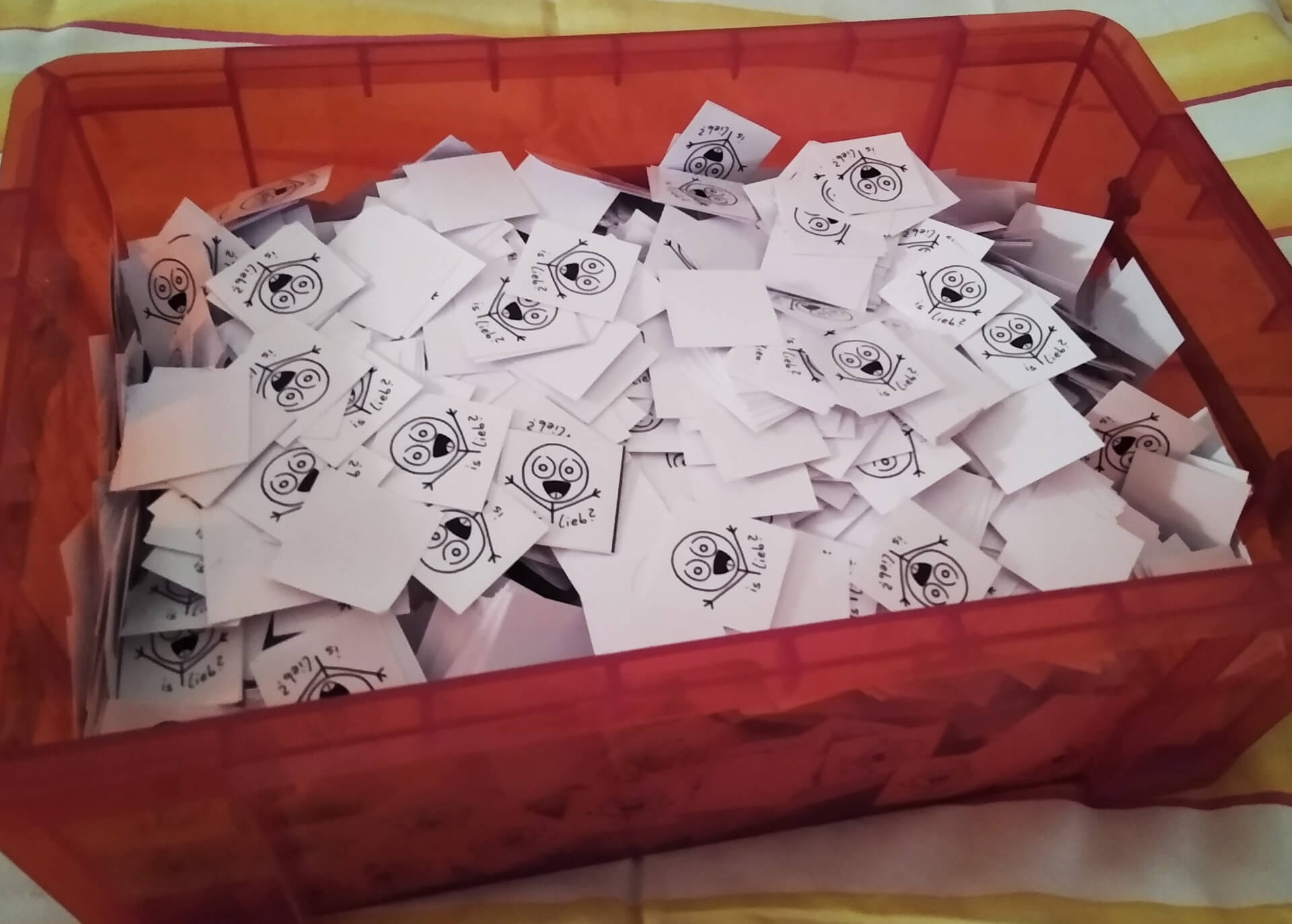 Vielleicht ist euch das gar nicht so bewusst, aber jedes kleine Sticker- oder Postkarten-Motiv, das ich im Shop im Programm habe, ist an meinem Ende eine komplette Vorrats-Kiste: