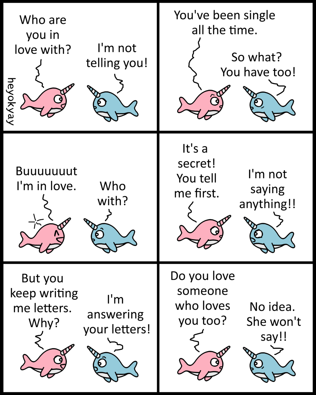 Hier ausnahmsweise noch ein englischer Comic. Die englischen heyokyay-Comics findet ihr immer auf heyokyay.com – außerdem gibt es überall, wo ein islieb-Account existiert, auch einen für @heyokyay