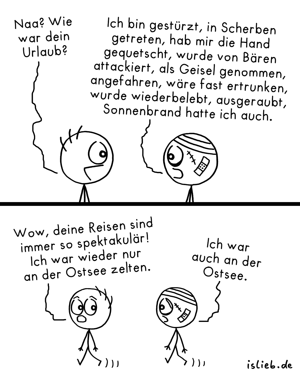 Urlaub 30. Juli 2018 von Eylou Kommentar verfassen Für die Unfallkasse, wie sich sicherlich erkennen lässt. 😉 Comic-Ansicht: Normal | Comic-Archiv