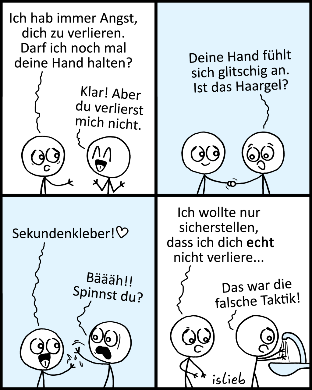 Irgendwie fand ich lustig, dass die eine Figur zuerst an Haargel denkt, obwohl beide keine Haare haben. Ich versuche öfter, solche Kleinigkeiten einzubauen und hoffe dann, dass sie ein paar Personen auffallen.