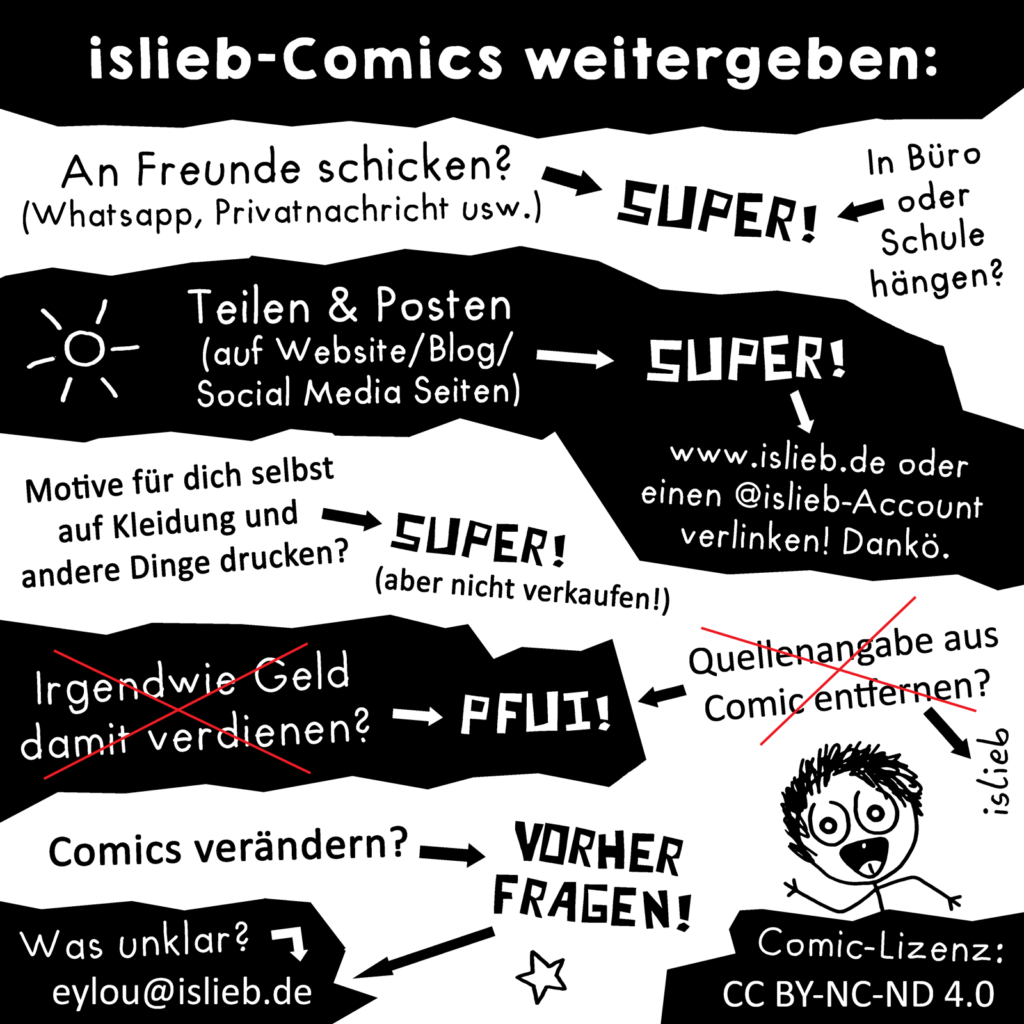 Ach so, und wenn ihr Comics weitergeben wollt, könnt ihr das natürlich gern machen. Gibt aber ein paar Regeln, die habe ich hier zusammengefasst: