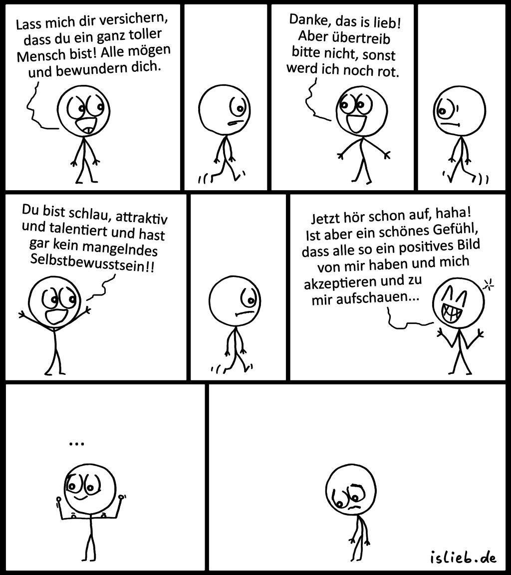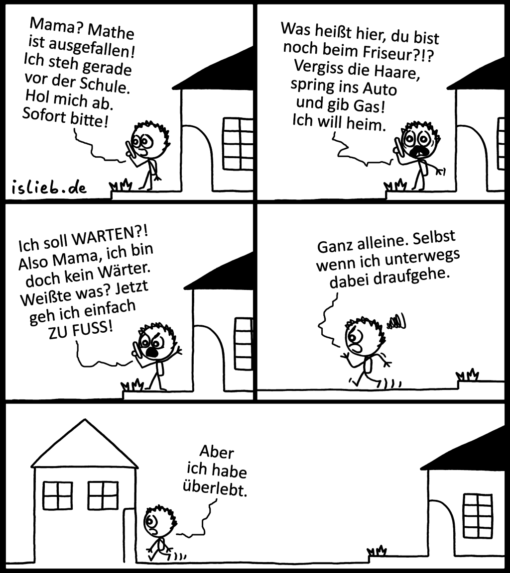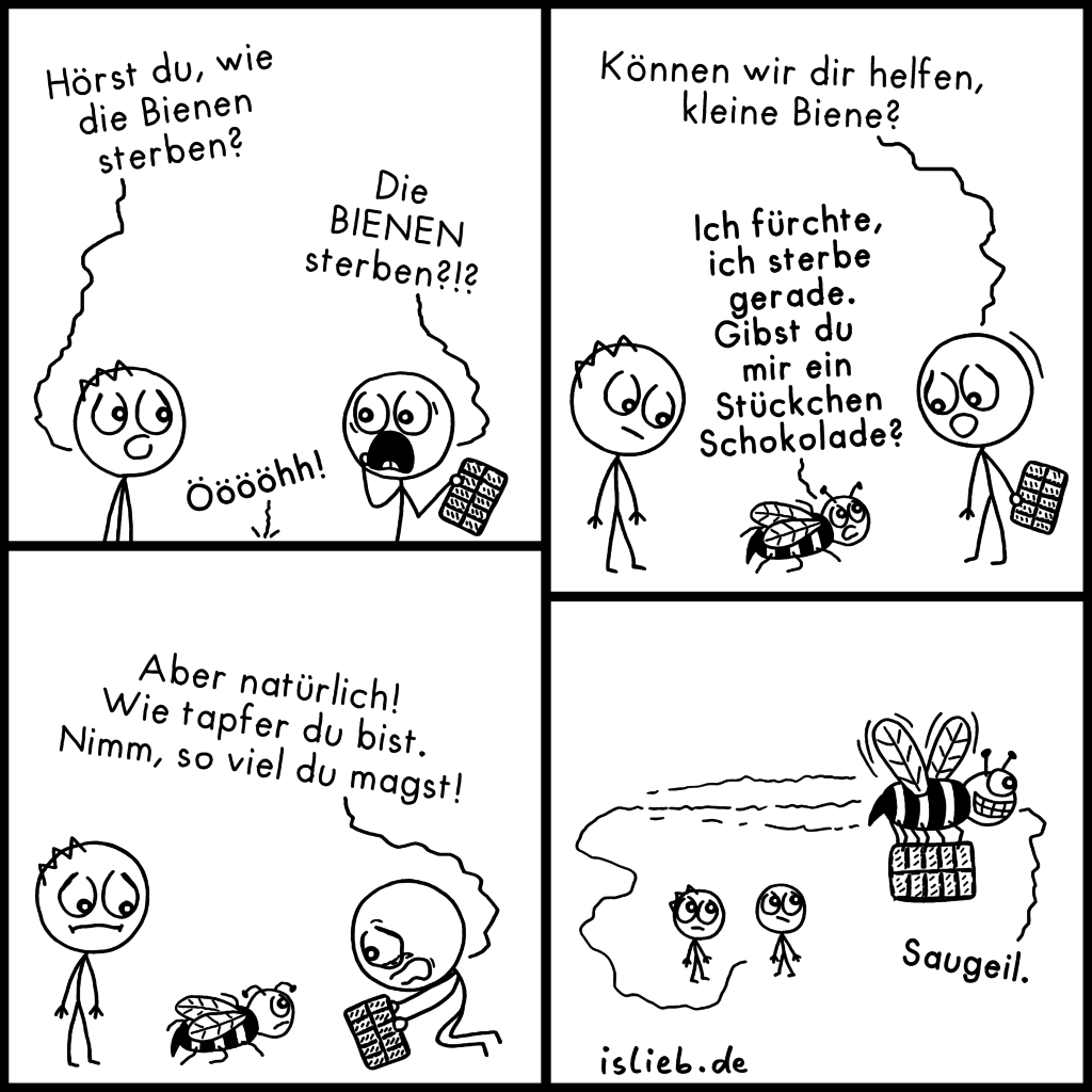Den Comic hier hatte ich gestern schon mal auf Twitter getestet. Wie beim Herz im Fluss-Comic da unten scheint mir, er ist nicht so recht verstanden worden (oder hat aus anderen Gründen nicht gezündet). Was dann immer echt frustrierend ist, weil ich in beiden Fällen damit überhaupt nicht gerechnet hätte und in den 6-Panel-Comics wirklich Arbeit steckt.