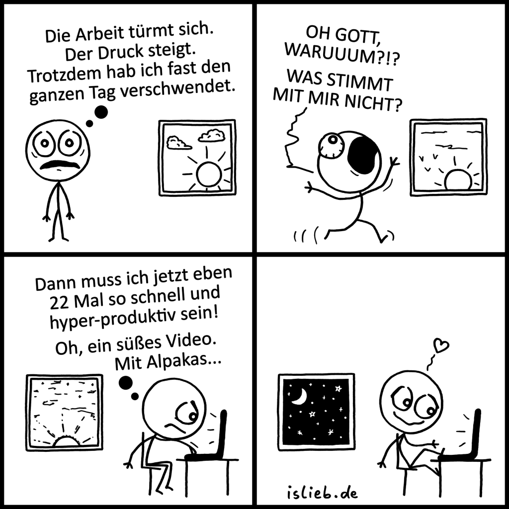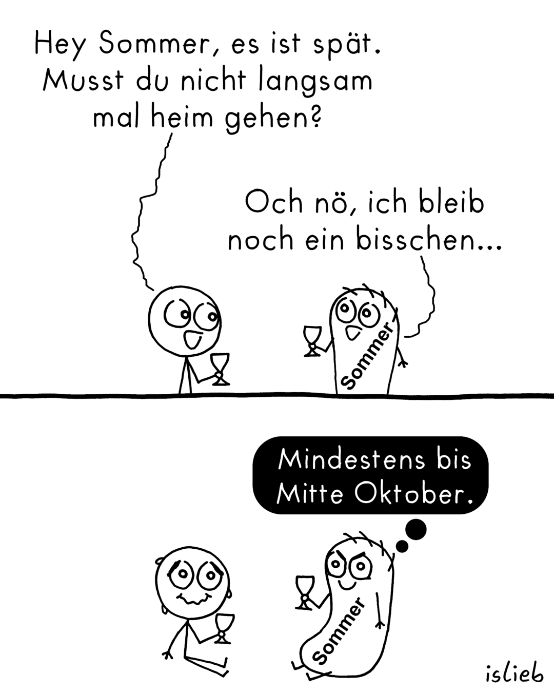 Jetzt muss ich mich doch mal kurz entschuldigen, zumindest bei allen, denen das aufgefallen ist: War eigentlich nicht geplant, dass hier auf einmal weniger Comics kamen. Irgendwie war ich noch etwas Sommer-empfindlicher als sonst, hatte viel Extra-Zeug zu tun, hatte ein paar Untätig-Rumhänge-Gefühle und musste statt 3 Packungen Keksen zuletzt auch noch einen offenbar leicht verdorbenen Salat verdauen, das war alles nicht der ganz große Hit.
