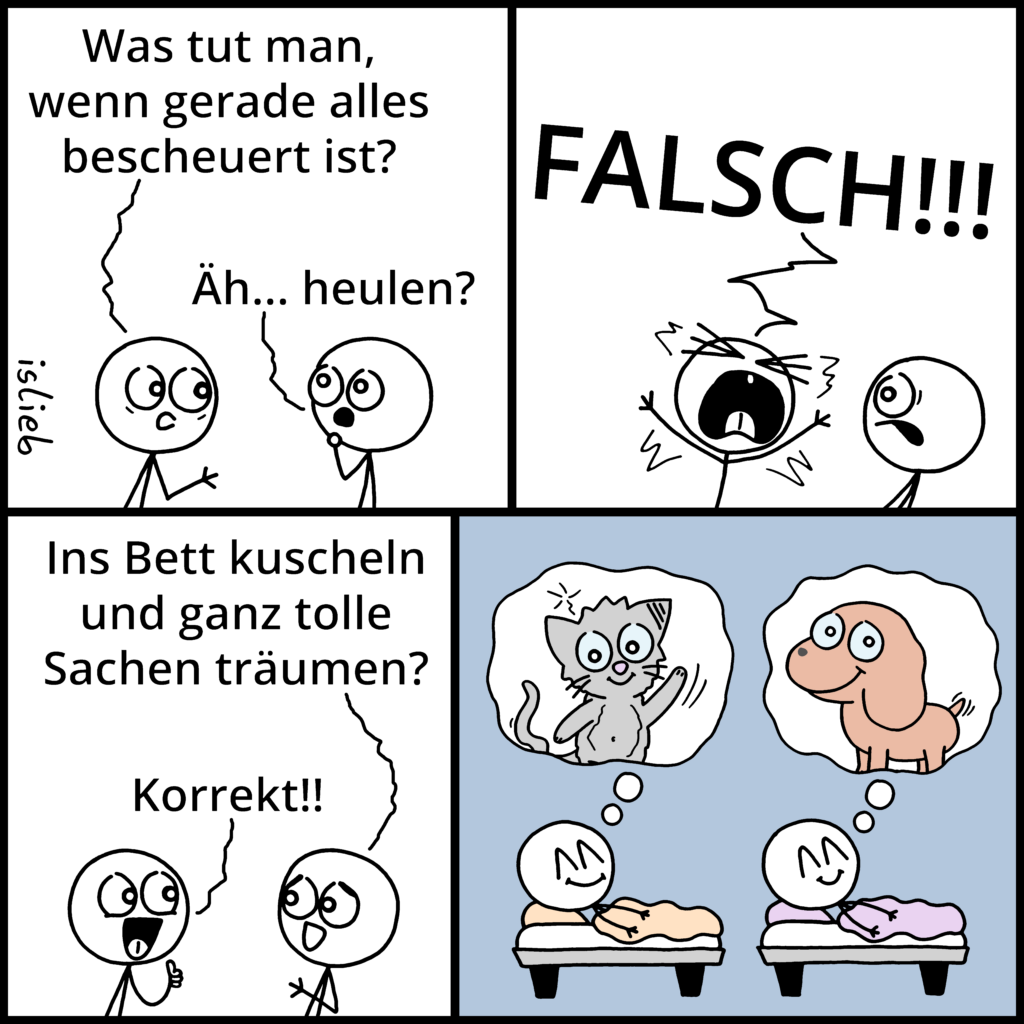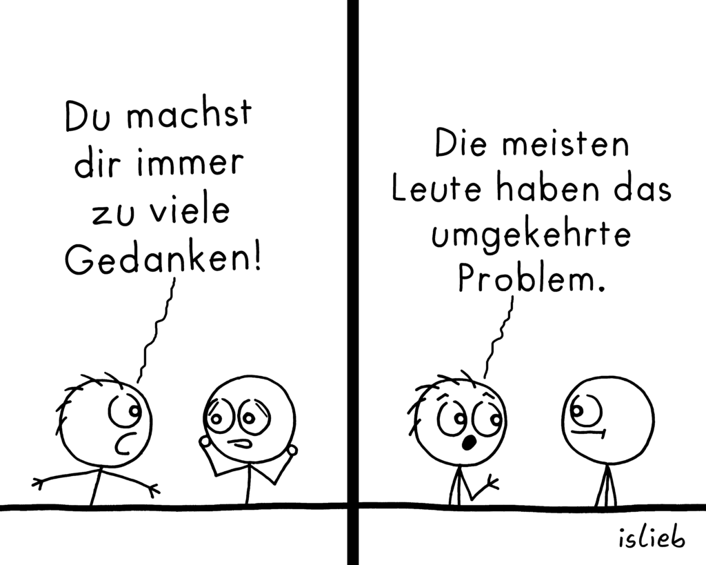 Dass Leute unter Comics oft kommentieren: „Ha, das kann ich nachempfinden!“ ist also nicht wirklich Zufall oder ein totales Mysterium, sondern schon beabsichtigt. (Manchmal klappt es sehr gut, manchmal nicht.)