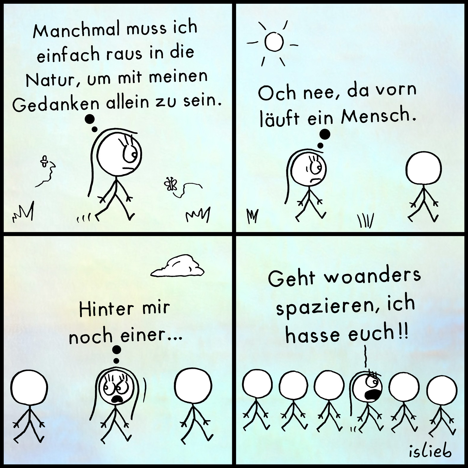 Das da unten ist ein alter Comic und viele von euch kennen den sicher schon. Habe aber noch einen grünblauen Hintergrund reingeklatscht, für etwas mehr Natur-Feeling: